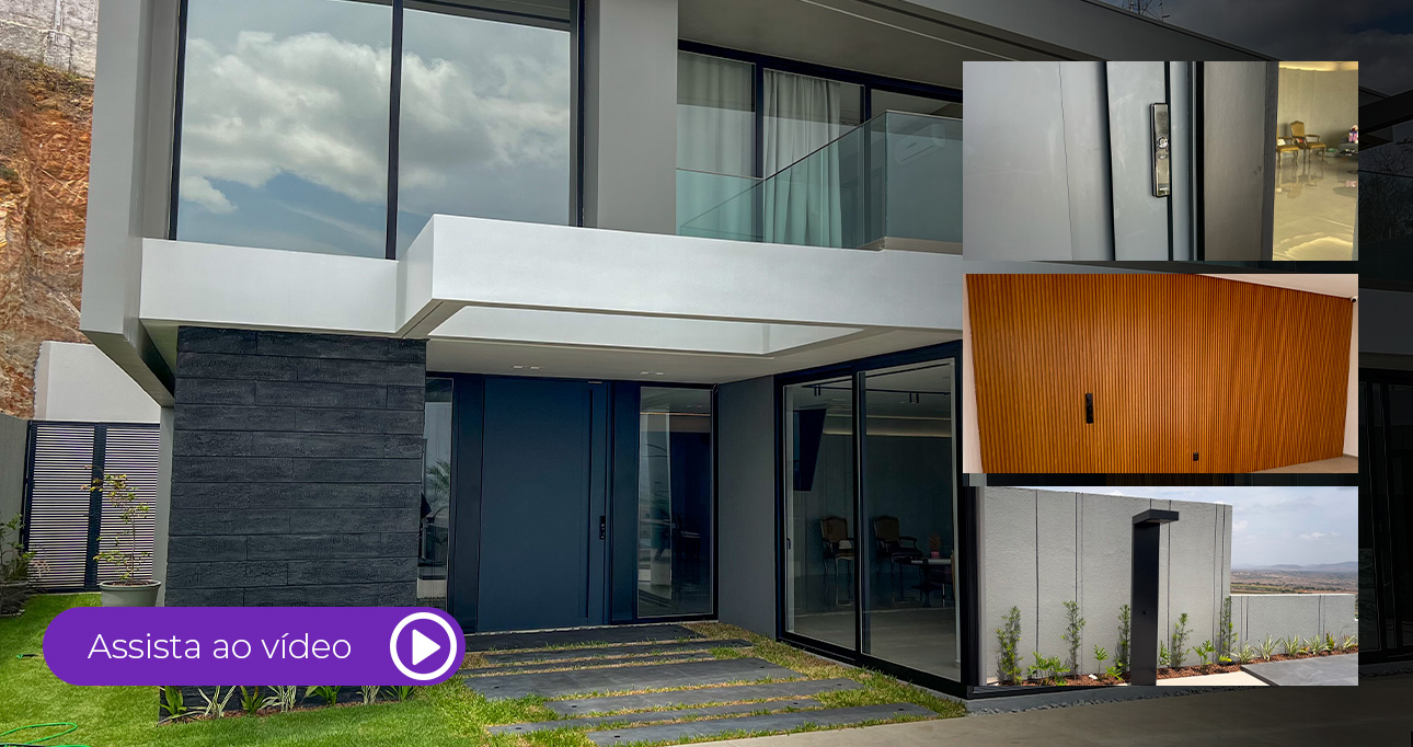 ✅ Porta principal em ACM 4mm Kynar com puxador Cava, uma peça imponente e sofisticada.
